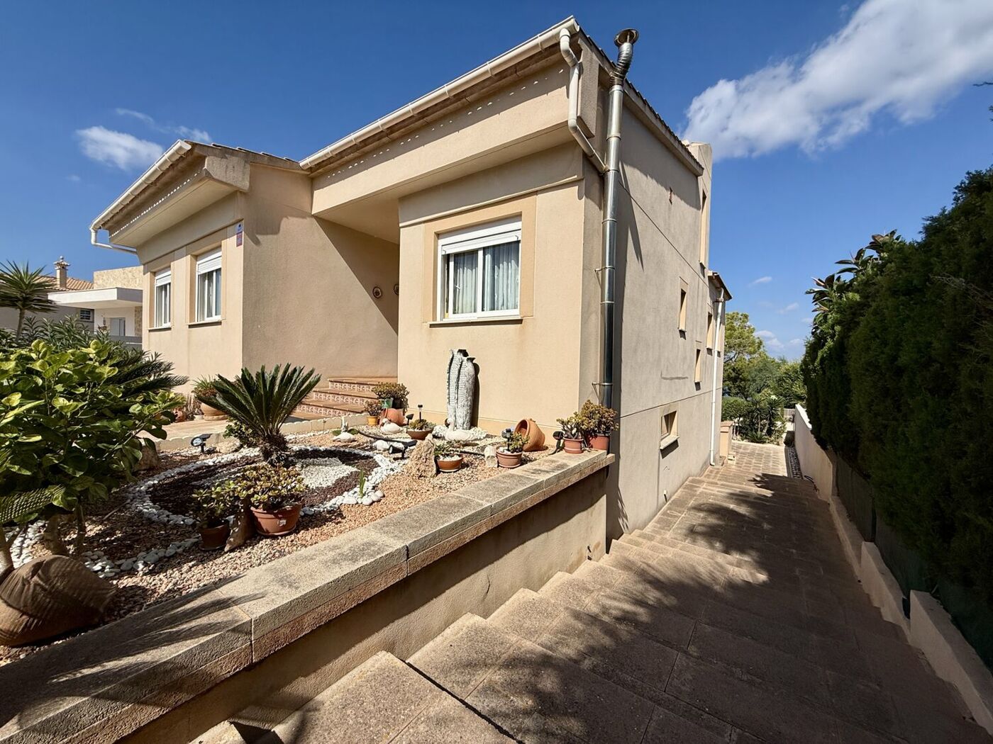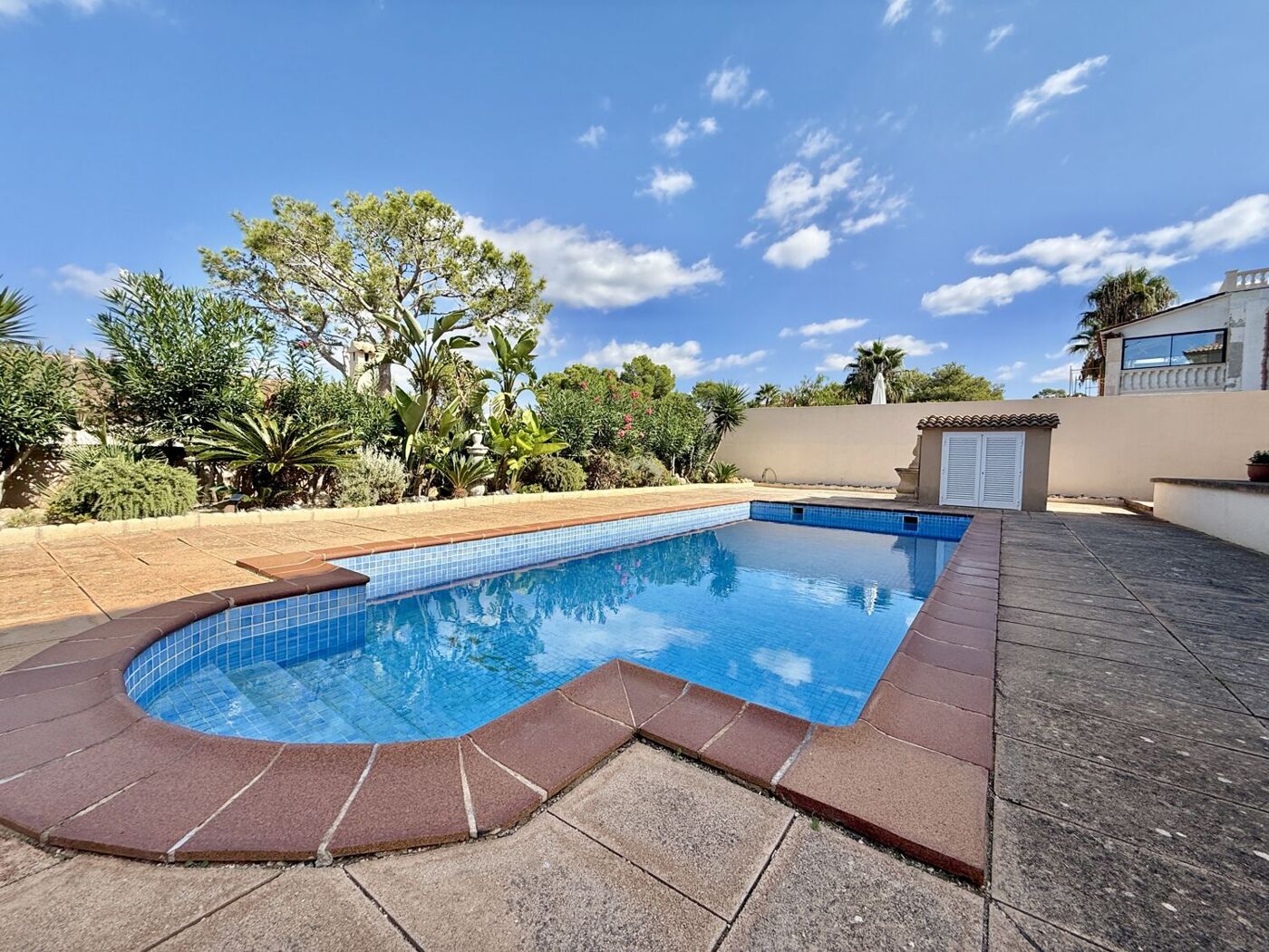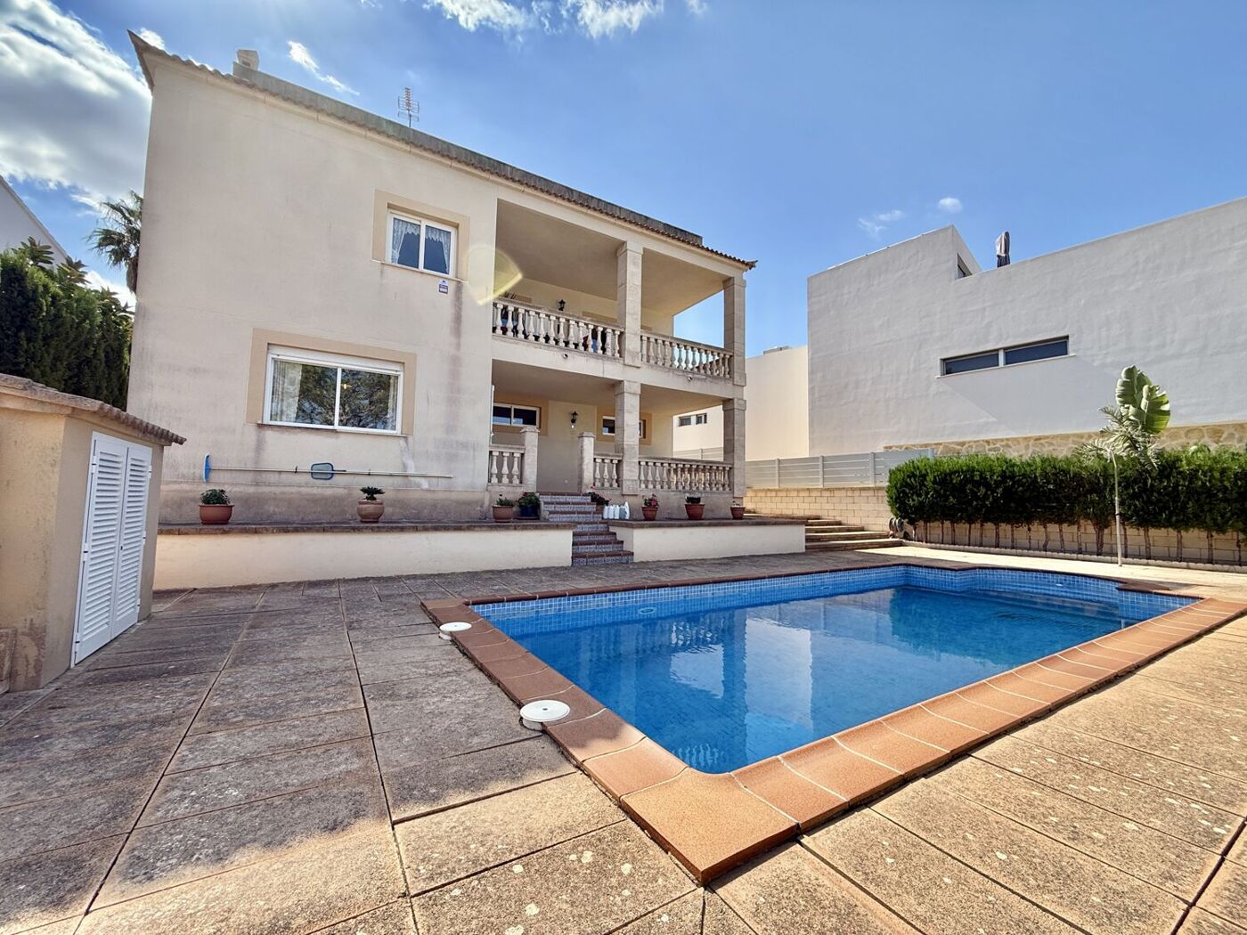 Das Haus verfügt über eine spektakuläre, nach Nordwesten ausgerichtete Terrasse, ein idealer Ort, um den herrlichen Meerblick zu genießen und den Tag ausklingen zu lassen. Es gibt auch einen zusätzlichen Balkon, ideal für ruhige Momente mit einer Tasse Kaffee in der Hand. Und als ob das noch nicht genug wäre, ist der Swimmingpool der perfekte Ort, um sich abzukühlen und die Sonne im Kreise Ihrer Lieben zu genießen.