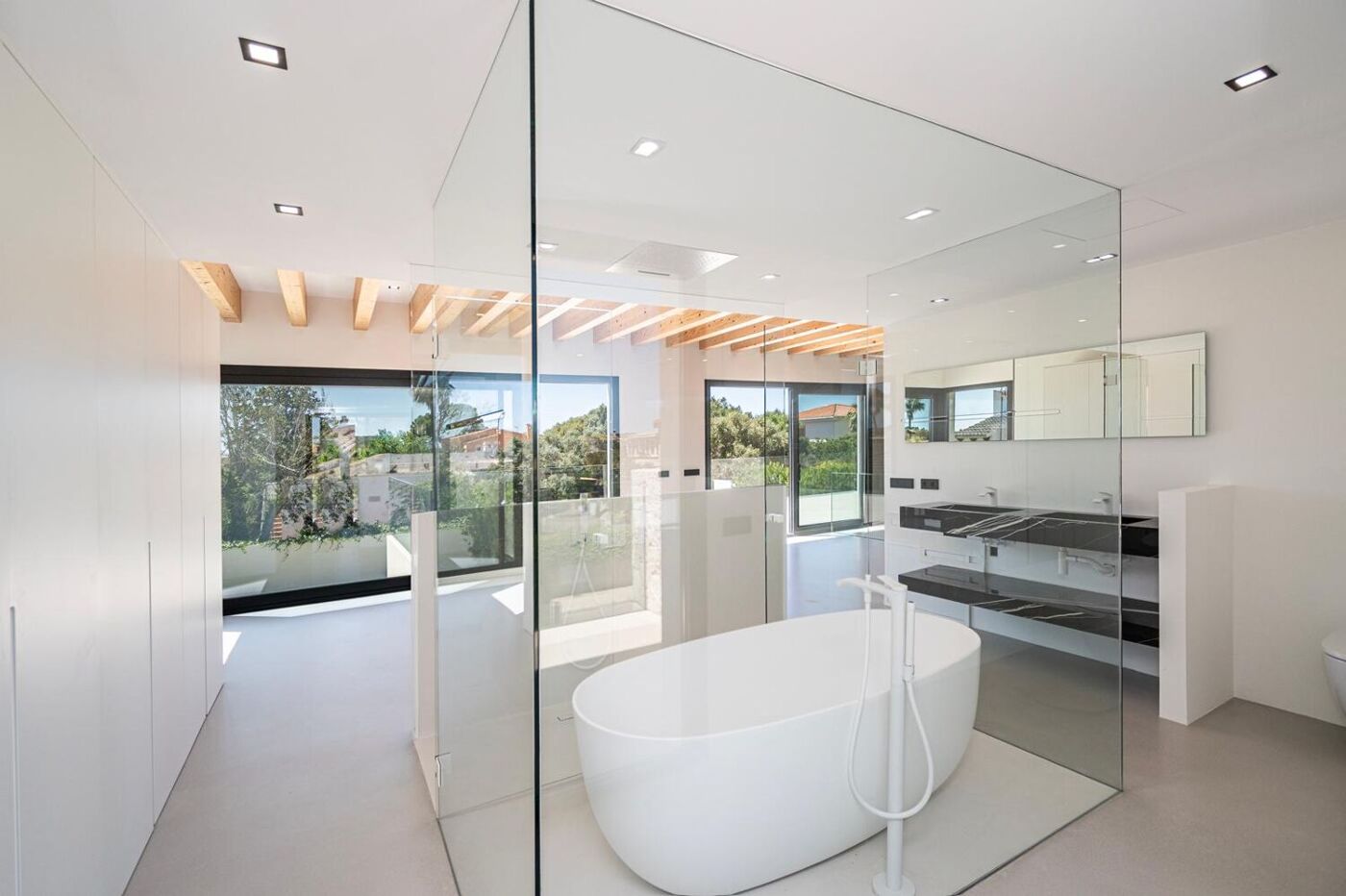 Im Außenbereich lädt eine großzügige Terrasse zum Entspannen ein und der private Swimmingpool bietet eine perfekte Abkühlung an heißen Tagen. Die Villa in Bahia Grande vereint somit Komfort, Stil und eine exzellente Lage.