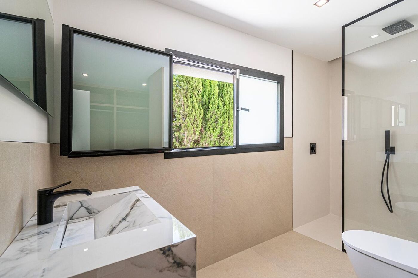 Die hochwertige Ausstattung wird auch bei der Bodengestaltung deutlich, wo man sich für elegante Fliesen entschieden hat, die pflegeleicht sind und dem Innenraum zusätzliche Klasse verleihen.