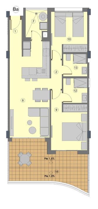 Diese exquisite und moderne Etagenwohnung befindet sich in einer Familienfreundlichen Neubau Wohnanlage in Sa Coma und erfüllt alle Ansprüche an komfortables Wohnen. Diese erstklassige Immobilie besticht durch eine großzügige Wohnfläche von ca. 77 Quadratmeter, verteilt auf drei stilvoll gestaltete Zimmer.Das Herzstück dieser Wohnung ist die offene Einbauküche, die nahtlos in den Wohnbereich übergeht und ein einladendes Ambiente schafft. Hier können Sie Ihre kulinarischen Künste entfalten und gesellige Abende mit Freunden und Familie genießen. Die hochwertige Fliesenausstattung zieht sich durch die gesamte Wohnung und unterstreicht das moderne Design.