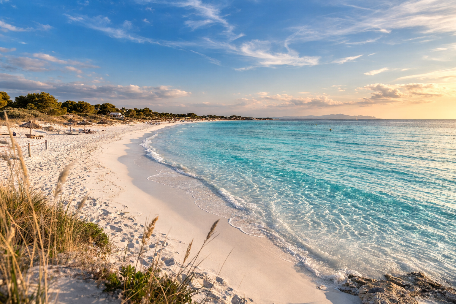 Sa Ràpita ist Mallorcas „leichter Seewind“: entspannt, küstennah und ohne großen Trubel. Wenn du Meerliebe mit Alltagstauglichkeit verbinden willst, bist du hier richtig. Der Naturstrand Es Trenc liegt praktisch vor der Tür, der kleine Hafen sorgt für Urlaubsgefühle – und trotzdem erreichst du Palma in rund 35–40 Minuten.